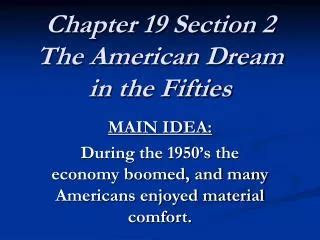 Read Online Chapter 19 Section 2 The American Dream In Fifties Answer Key Epub online is a convenient and frugal way to read Chapter 19 Section 2 The American Dream In Fifties Answer Key you love right from the comfort of your own home. Yes, there sites where you can get Epub "for free" but the ones listed below are clean from viruses and completely legal to use.